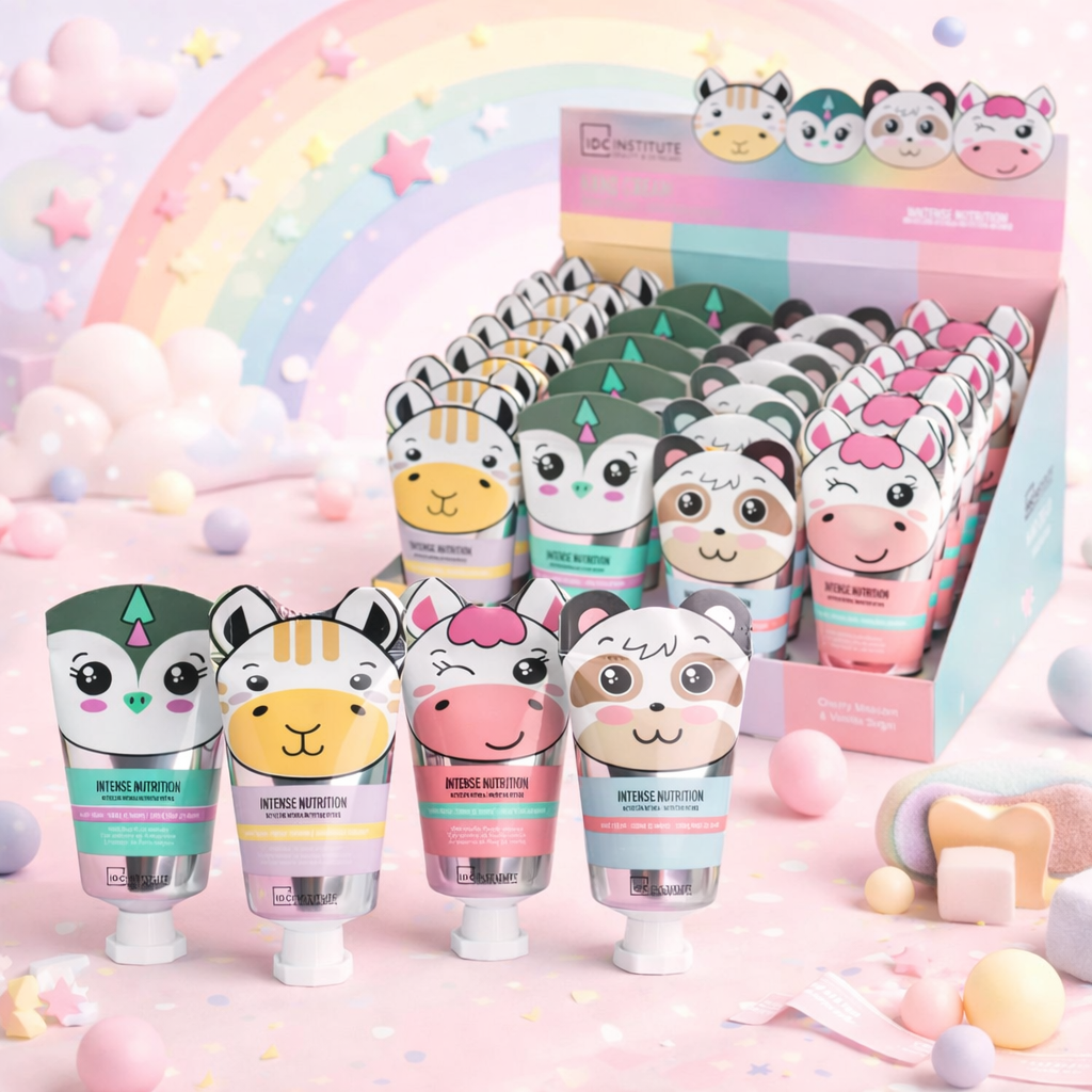Chaque crème pour les mains est présentée dans un contenant représentant le visage d'un animal différent, comme un panda, une girafe, un pingouin et une licorne, ce qui en fait le cadeau parfait pour tout amateur d'animaux et de fantaisie.